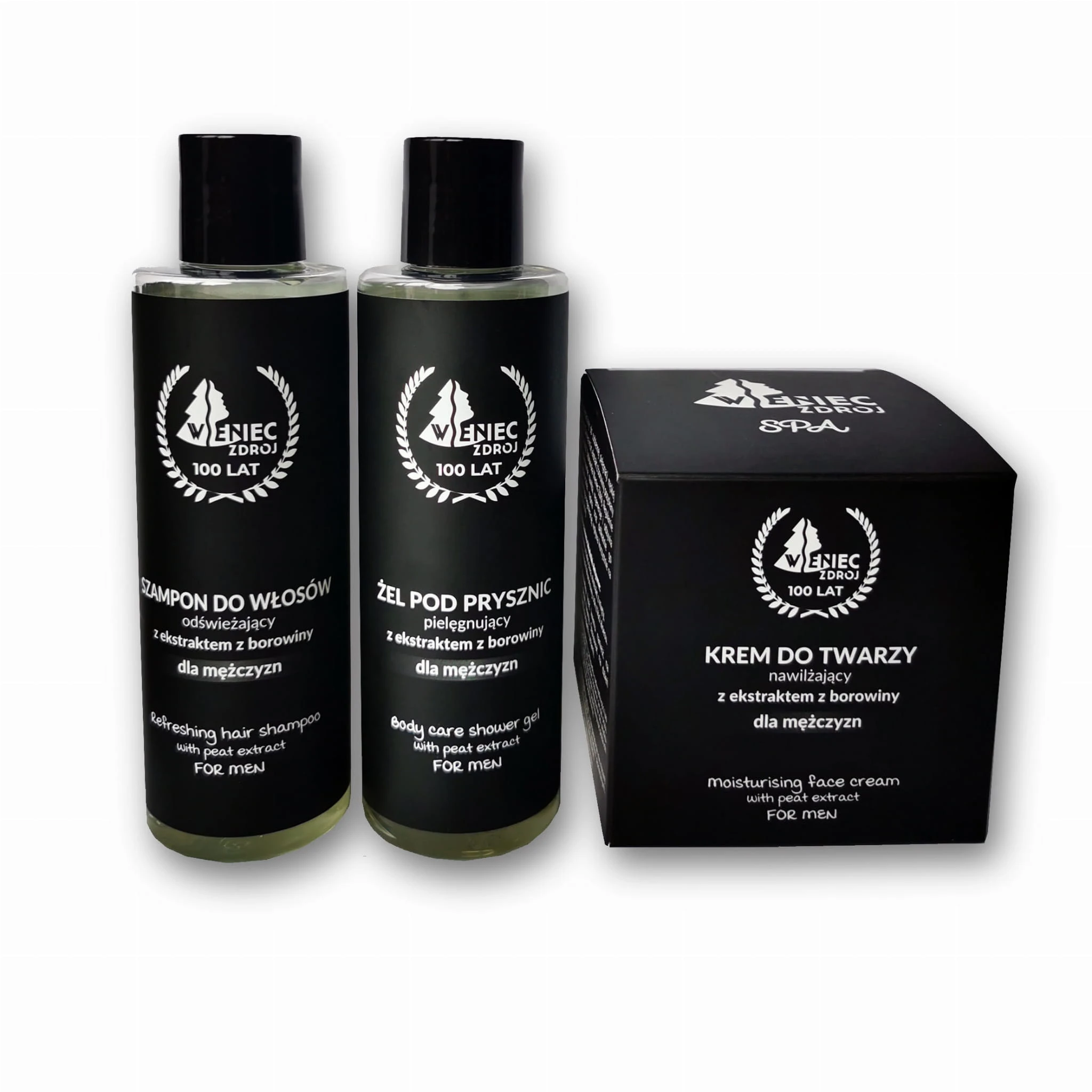 Zestaw dla mężczyzn: krem, żel i szampon z ekstraktem z borowiny